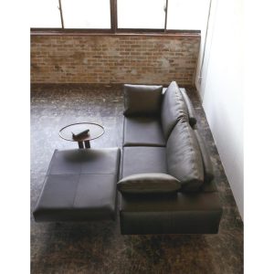 A sharp, angular frame and triangular legs make the seat appear more delicate, giving the sofa both a low center of gravity and a sensation of floating. It also will not overwhelm or crowd your space. The deeply comfortable sofa, with a linear theme throughout and flexible, resilient arms and cushioning, was designed with warm care and attention. The cylindrical pillow-like bolsters on the back provide both a design accent and support for leaning back. With cushions available as a replacement option for pillows, the possibilities for styling this sofa are endless.